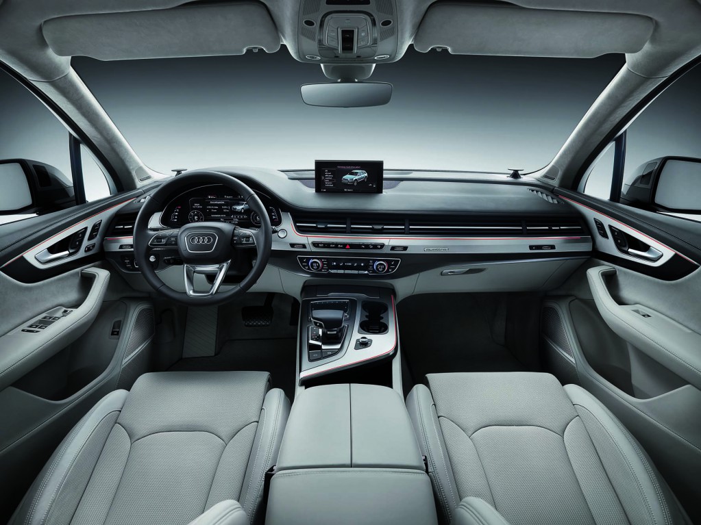 Die Motoren setzen Bestwerte im Segment der großen SUVs mit Allradantrieb: der 3.0 TDI mit 200 kW (272 PS) und der 3.0 TFSI mit 245 kW (333 PS) beschleunigen den neuen Audi Q7 in 6,1 Sekunden (TFSI) beziehungsweise 6,3 Sekunden (TDI) von 0 auf 100 km/h. Der Diesel-V6 begnügt sich auf 100 Kilometer im Mittel mit gerade mal 5,7 Liter Kraftstoff (149 g CO2 pro km). Auch bei Bedienkonzept, Infotainment, Connectivity und den Fahrerassistenzsystemen setzt der Audi Q7 neue Maßstäbe. Der Modulare Infotainmentbaukasten der zweiten Generation ist ebenso an Bord wie das Audi Virtual Cockpit. Das neue MMI all-in-touch Bedienteil mit großem Touchpad macht die Bedienung zum Kinderspiel. Die erweiterten Dienste von Audi connect, das Audi tablet für die Fondpassagiere und die zwei Soundanlagen mit 3D-Klang sind weitere attraktive Innovationen. Neu ist auch die Smartphone-Integration von Google Android Auto und Apple Carplay. Als eines der ersten Automobile weltweit bietet der neue Audi Q7 diese Funktionen an.