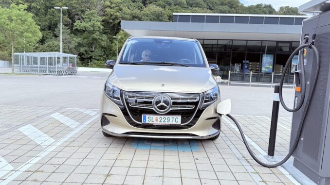 Beim Laden zeigt sich der EQV alltagstauglich, aber nicht rekordverdächtig. An der heimischen Wallbox (11 kW AC) dauert eine Vollladung etwa 8 bis 10 Stunden – ideal also für die Nacht zu Hause. An der Schnellladesäule geht es deutlich flotter: Mit bis zu 110 kW DC lässt sich die Batterie von 10 auf 80 Prozent in etwa 40 bis 45 Minuten aufladen. Je nachdem die Ladesäule hergibt. Interessant ist, das bei vielen Schnellladesäulen 300 kW draufsteht, aber dann doch nur mit 70 kW – 90 kW geladen wird. In der Praxis sind das angenehme Werte, die eine entspannte Reiseplanung erlauben – zumal der EQV ein Navigationssystem mit Ladeplanung an Bord hat, das passende Stopps vorschlägt.