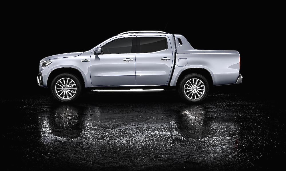 Der X stemmt eine Nutzlast von bis zu 1,1 Tonnen. Das reicht beispielsweise für den Transport von 17 vollen 50-Liter-Bierfässern auf der Ladefläche. Mit einer Zugkraft von bis zu 3,5 Tonnen kann er einen Anhänger mit drei Pferden oder eine Acht-Meter-Yacht ziehen. Dank seines langen Radstands von 3.150 Millimetern, dem kurzen, kaschierten Überhang vorne, der nach hinten gesetzten Fahrgastzelle und dem sehr langen Überhang hinten hat die X-Klasse einen gestreckten Karosseriekörper, der Dynamik ausstrahlt und dabei auch noch Funktionalität aufweist.