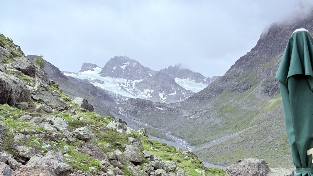 Die letzte Steigung ist geschafft, wir betreten die Jamtalhütte und Gerhard Walter kommt uns schon entgegen. Er macht einen entspannten Eindruck. Eigentlich hat er sich nicht verändert. Er erzählt uns zunächst über sein neues Leben als Hüttenwirt. Beim herrlichen Mittagessen bei Kaßspatzln mit Käse aus der Region, erzählt er uns von den neuesten Projekten für die Jamtalhütte. So wird es ab Herbst 25 auch Kunst & Kultur auf der Hütte geben. Mehr wollte er uns noch nicht verraten. Wir sind gespannt was da noch alles kommt. Jedenfalls ist er voller Zuversicht und Tatendrang. Er hat offenbar „seine“ Aufgabe für die nächsten 10 Jahre gefunden – so sein Plan.