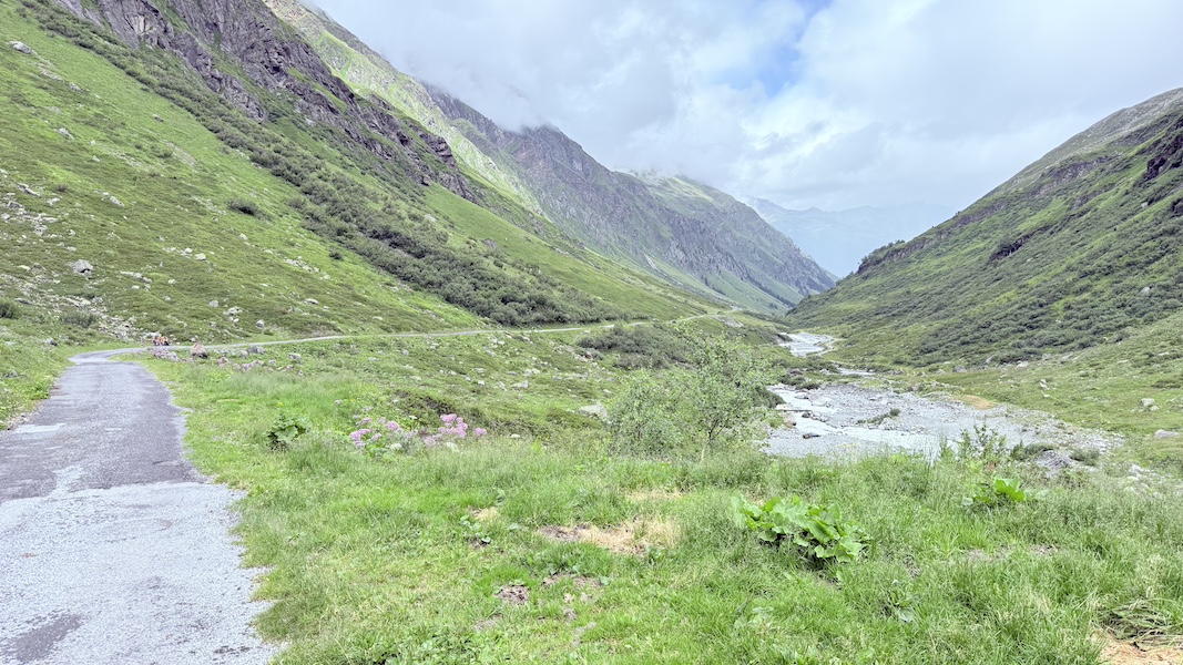 Wir starten direkt in Galtür, man benötigt rund 1,5 Stunden Fahrzeit. Der Weg dorthin ist teils asphaltiert, teils feiner Schotter und kann von jedermann mit etwas Kondition bewältigt werden. Das Jamtal ist eine völlig unberührte Landschaft, nur der Weg und der Abfluss vom Stausee. In der Ferne am Talende sieht man schneebedeckte 3.000 Tausender. Aber es geht stetig bergauf, lediglich die letzten 2 Km haben eine stärkere Steigung – aber mit E-Bikes problemlos zu schaffen. Oben erwartet uns eine Überraschung.