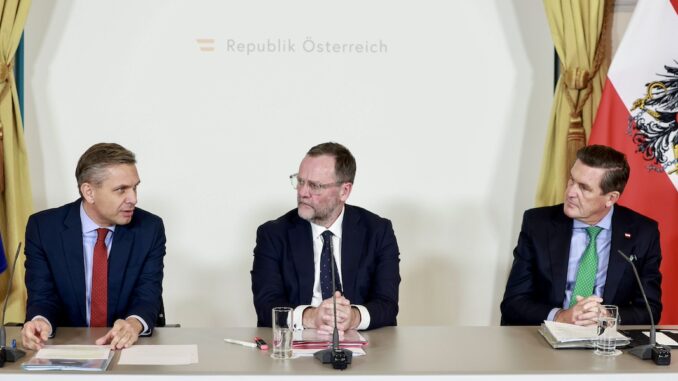 „Wir sind am Beginn der Woche mit Zahlen konfrontiert worden, die uns einerseits überrascht haben, andererseits auch Anlass geben, dieses gesamtstaatliche Defizit, das mit 4,7 Prozent im Jahr 2024 nun feststeht, wieder in Richtung 3 Prozent zu bekommen“, sagte Bundeskanzler Christian Stocker nach einem Arbeitsgespräch zum gesamtstaatlichen Haushalt.