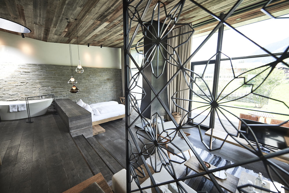 Das kleine Refugium mit 17 GutshofSuiten, vier GartenSuiten und drei exklusiven HideawaySuiten mit eigener Sauna im Garten, besticht durch puristische Architektur, naturverbundenen Luxus und herzliche Gastfreundschaft. Spa-Anwendungen genießen Gäste im Private Spa auf dem Dach mit offenem Kamin, einer Badewanne im Freien und dem beeindruckenden Ausblick auf die umliegenden Berggipfel.