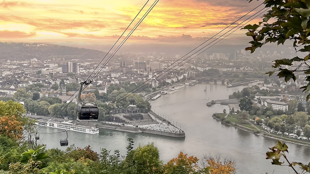 Zum Abschluss erwartet die Reisenden Koblenz mit dem berühmten „Deutschen Eck“. Hier fließen Rhein und Mosel zusammen – ein wunderschöner Anblick, besonders bei Sonnenuntergang. Mit der Seilbahn zur Festung Ehrenbreitstein bietet sich ein großartiger Blick über Stadt und Flüsse.