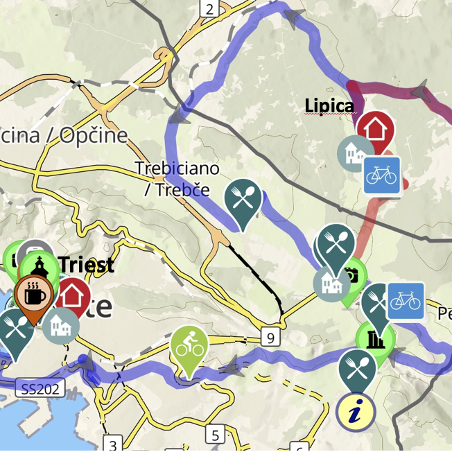 Meine heutige Tour für mich durch das Karstgebiet mit vielen Dolinen, wo einst die Partisanen gegen Deutschland kämpften. Ich fahre durch kleine Ortschaften und heute ist die kürzeste Etappe mit nur 35 km.