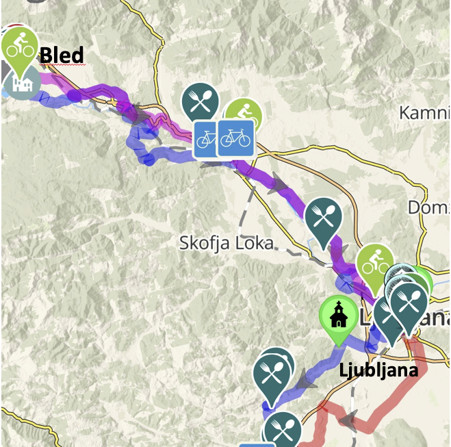 Man fährt über Waldetappen, wo fast nur Motorräder fahre, fährt durch die mittelalterliche Stadt Radovljica, hat eine herrlichen Blick über die Karawanken. Weiter geht es nach Kranj, wo ich gegen Mittags ankomme und mir in der Fußgängerzone ein leichtes Mittagessen gönne. Dann geht es über verkehrsarme Nebenstraßen in die seit 2016 „Grüne Hauptstadt Europa“ Ljubljana wo ich gegen 17 Uhr eintreffe. Mein Hotel liegt mitten im Zentrum und ideal um zum Abendessen einen kleinen Spaziergang zum Fluss Ljubljanica mit seinen bunt beleuchteten Brücken und an beiden Uferseiten gibt es eine Unzahl an Lokalen und Restaurants wo man vorzüglich ist. Es wird viel geboten hier, von Aufführungen an zentralen Plätzen bis zu einem Besuch auf der Burg. Aber 72 km machen einem doch etwas müde und so geht man ins Hotel zum Schlafen.